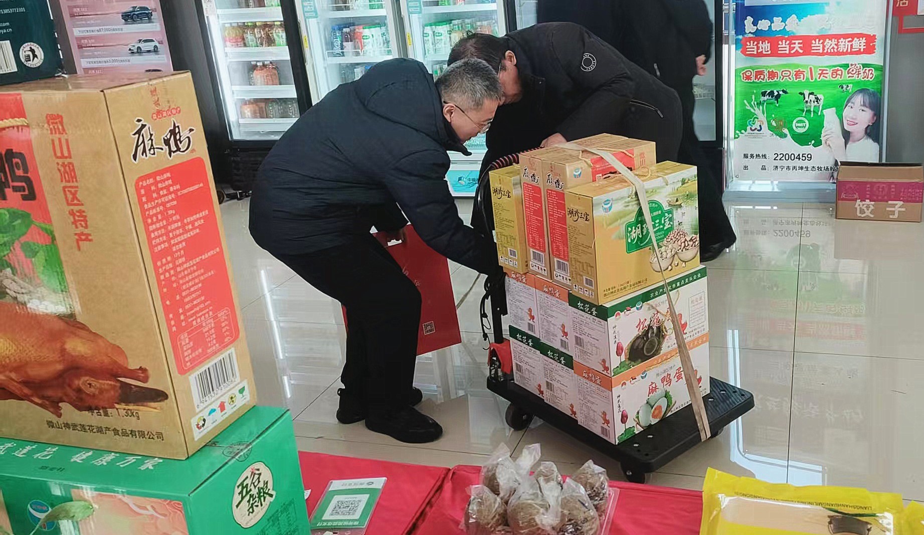 走进人头攒动的西连廊,在展销活动现场,微山湖渔湖产品备受欢迎,有个工作人员一次性选购了微山湖咸鸭蛋、松花蛋、湖珍三宝、麻鸭等十箱渔湖产品,年货节礼一站式备齐。还有来自兖州区的瑞鹏草莓,以其鲜美香甜的口感,吸引了众多工作人员争相询问购买,成为活动现场备受瞩目的“明星产品”之一。