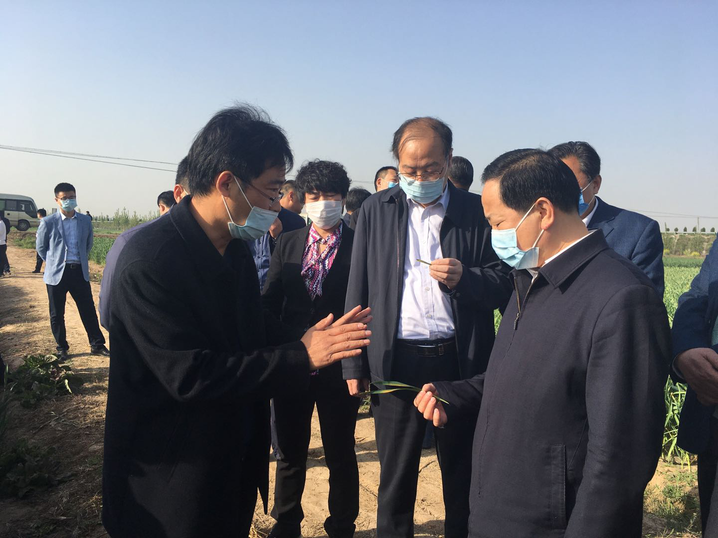 今天上午,省农业农村厅厅长李希信率专家组来我市,调研小麦条锈病监测防治工作。调研组一行认真察看小麦长势,对我市及早发现小麦条锈病病点、第一时间采取的“发现一点,防治一片”封锁措施给予充分肯定,并就相关工作进行了指导。领导指出,各级农业农村部门认真扎实做好小麦条锈病监测预警和防控工作,加大踏查力度,组织动员广大农户、种植大户、专业合作社、植保服务组织等社会力量开展拉网式普查,准确掌握发生动态,实行带药侦查,发现一点防治一片,打点保面,严防扩散蔓延。要做好农药、喷药机械的准备,确保物资、机械装备充足,不误应急防控。要通过报纸、广播电视、明白纸、微信图片等方式,加大宣传力度,提高广大种植户防控意识,切实实现群防群治,提高防控效果。 4月8日,省农业农村厅王登启一级巡视员、省植保总站徐兆春站长亲临指导,对济宁市小麦条锈病全省首先发现病点,第一吹哨人给予肯定。
